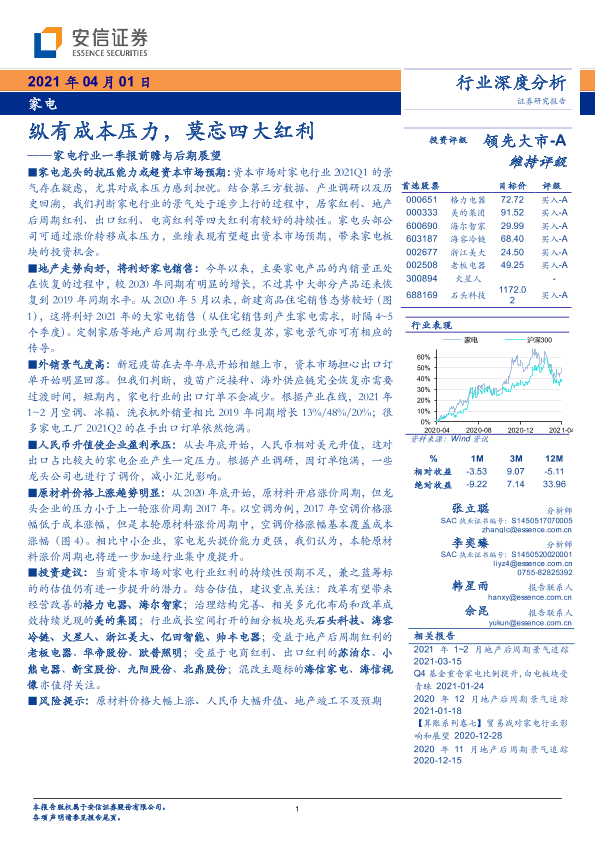【安信证券】【20210401】20210401-安信证券-家电行业一季报前瞻与后期展望:纵有成本压力,莫忘四大红利-21页