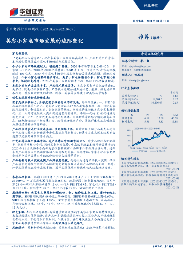 【华创证券】【20210411】家用电器行业双周报:美容小家电市场发展的边际变化-26页