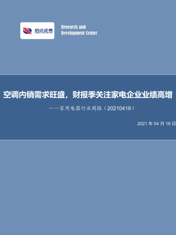 【信达证券】【20210418】家用电器行业周报:空调内销需求旺盛,财报季关注家电企业业绩高增-12页