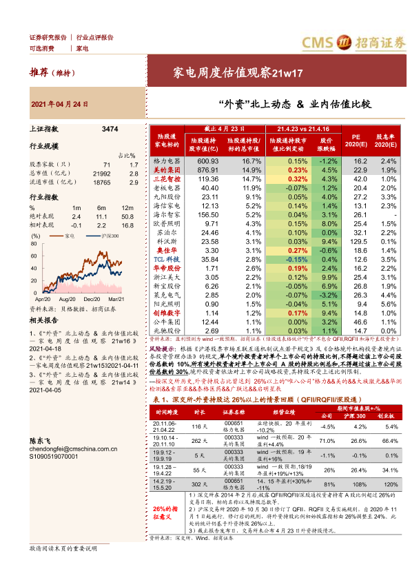 【海通证券】【20210424】家电周度估值观察21w17:“外资”北上动态&业内估值比较-3页