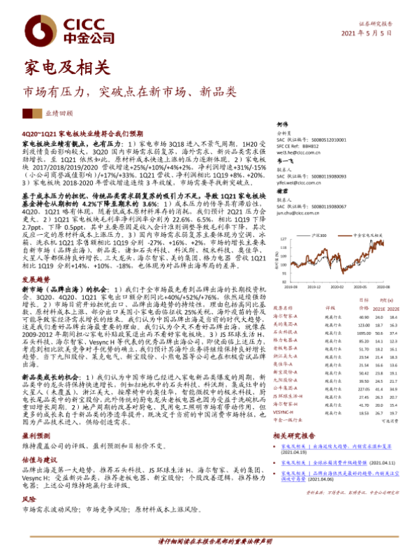 【中金公司】【20210505】家电及相关:市场有压力,突破点在新市场、新品类-22页