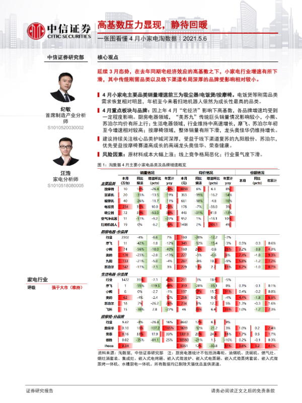 【中信证券】【20210506】家电:一张图看懂4月小家电淘数据:高基数压力显现,静待回暖-2页