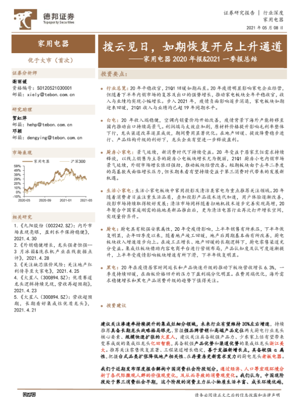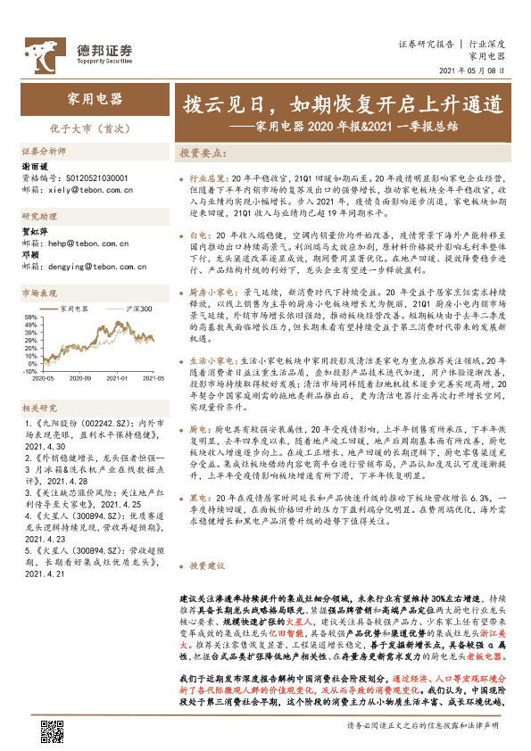 【德邦证券】【20210508】家用电器2020年报&2021一季报总结:拨云见日,如期恢复开启上升通道-43页