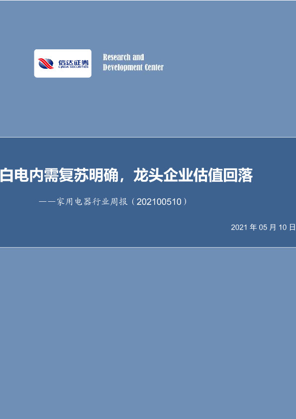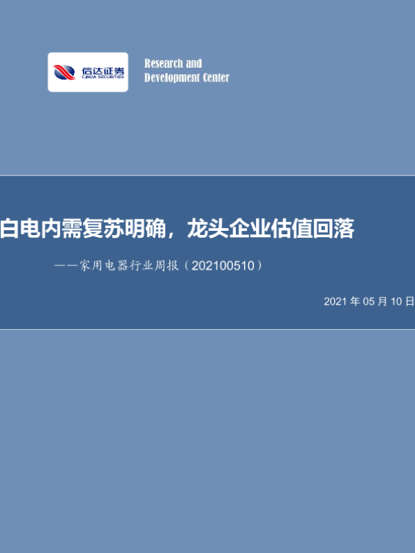 【信达证券】【20210510】家用电器行业周报:白电内需复苏明确,龙头企业估值回落-11页