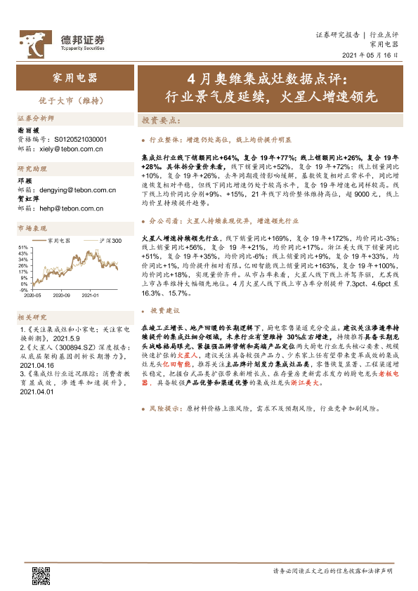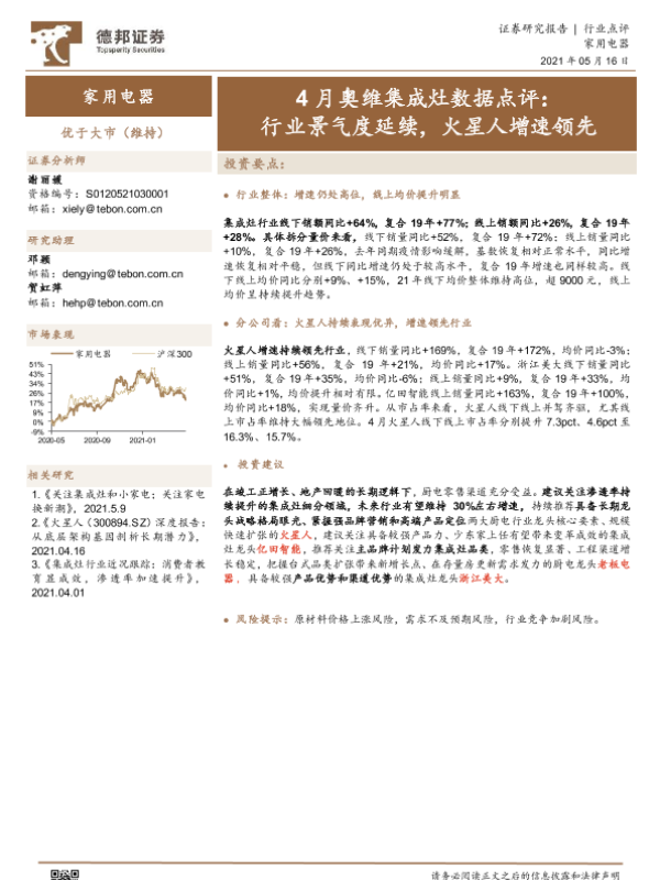 【德邦证券】【20210516】4月奥维集成灶数据点评:行业景气度延续,火星人增速领先-8页