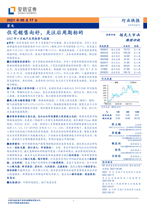 【安信证券】【20210517】家电:住宅销售向好,关注后周期标的-4页