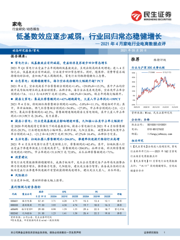 【民生证券】【20210520】2021年4月家电行业电商数据点评:低基数效应逐步减弱,行业回归常态稳健增长-16页
