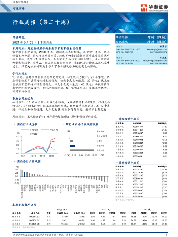 【华泰证券】【20210523】家用电器行业周报(第二十周)-13页