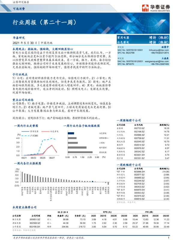 【华泰证券】【20210530】20210530-华泰证券-家用电器行业周报(第二十一周)-11页