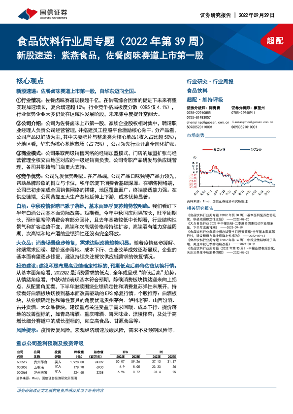 【国信证券】【20220929】食品饮料行业周专题(2022年第39周):新股速递:紫燕食品,佐餐卤味赛道上市第一股-22页