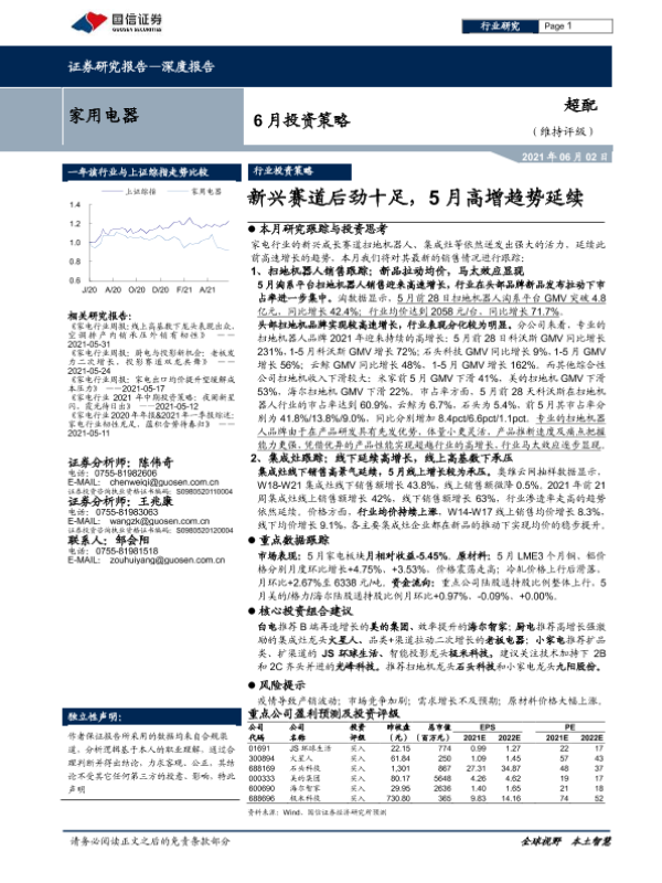 【国信证券】【20210602】家用电器6月投资策略:新兴赛道后劲十足,5月高增趋势延续-12页