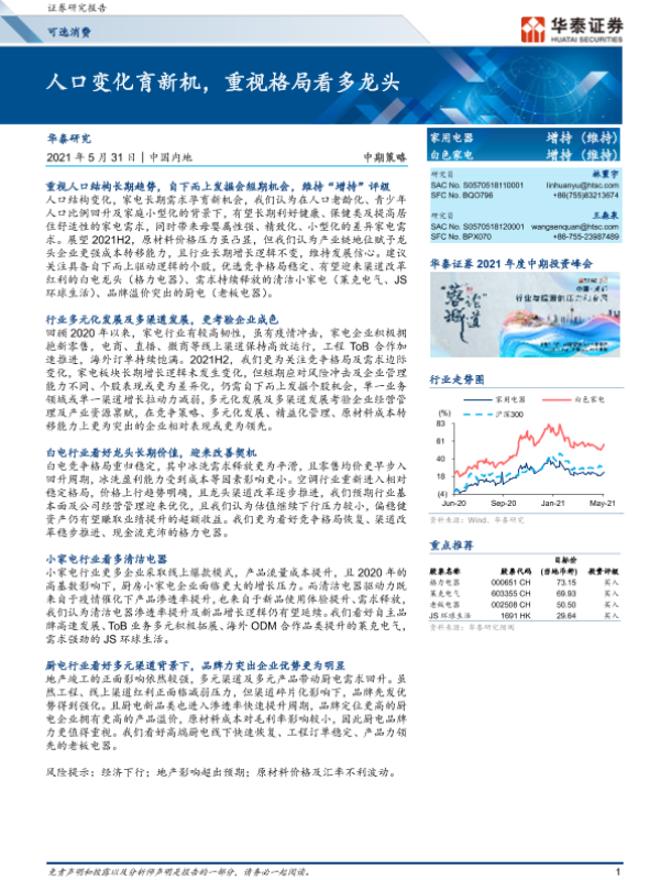 【华泰证券】【20210531】家用电器行业:人口变化育新机,重视格局看多龙头-33页