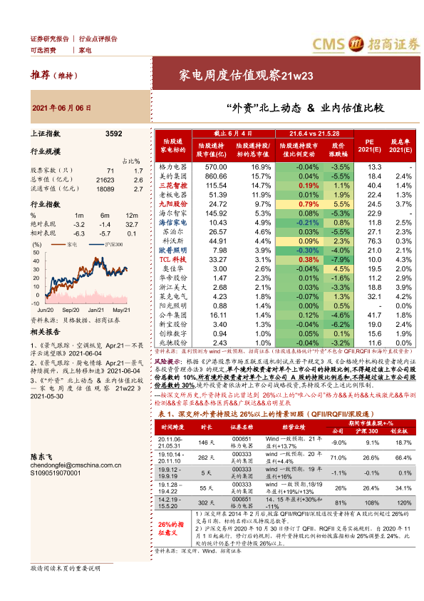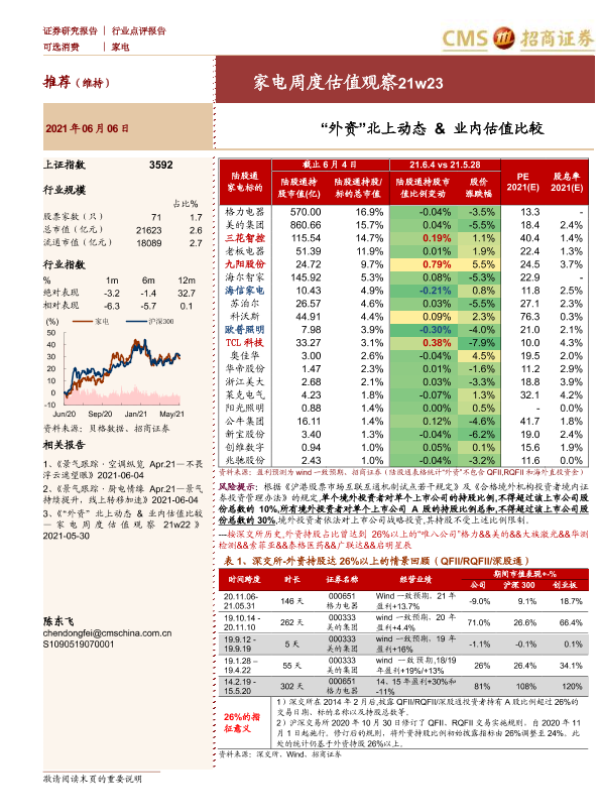 【海通证券】【20210606】家电周度估值观察21w23:“外资”北上动态&业内估值比较-3页
