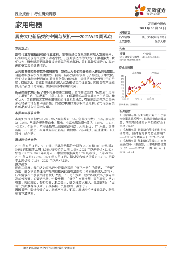 【天风证券】【20210607】家用电器2021W23周观点:厨房大电新品类的空间与契机-14页