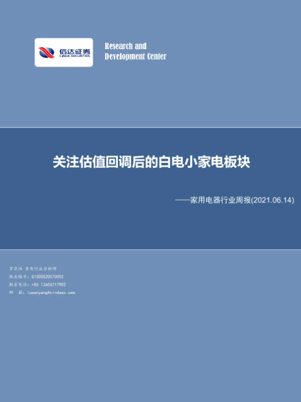【信达证券】【20210614】20210614-信达证券-家用电器行业周报:关注估值回调后的白电小家电板块-10页