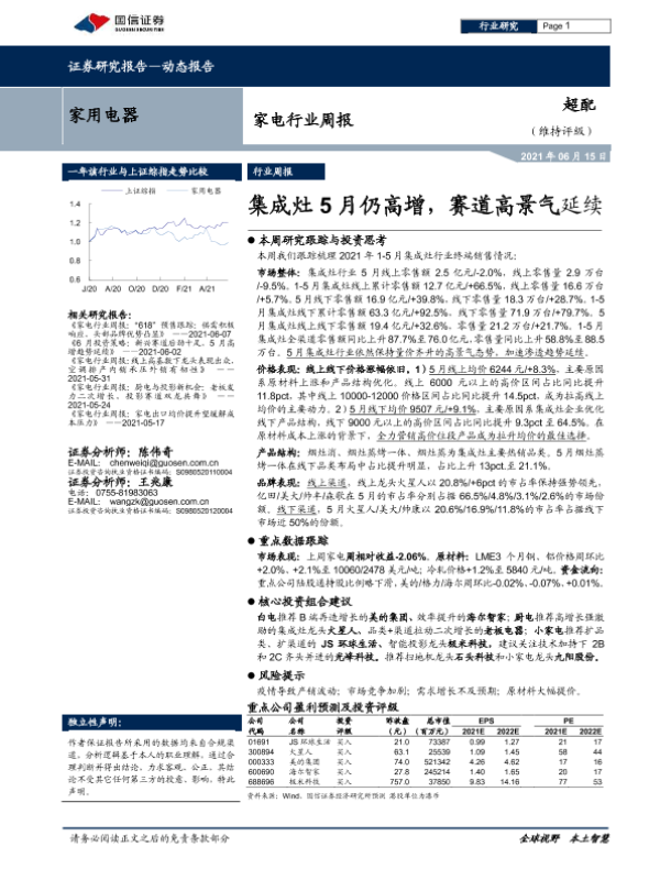 【国信证券】【20210615】家电行业周报:集成灶5月仍高增,赛道高景气延续-11页
