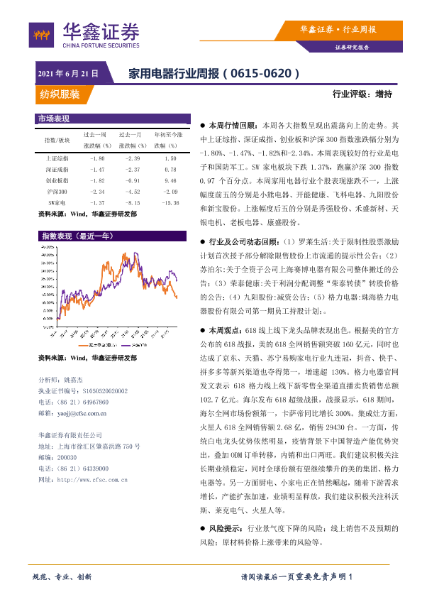 618促销 家电行业 市场表现 股票分析 风险提示