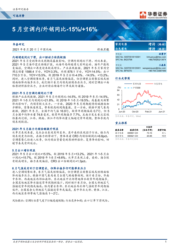 【华泰证券】【20210620】20210620-华泰证券-家用电器:5月空调内外销同比-15% +16%-10页
