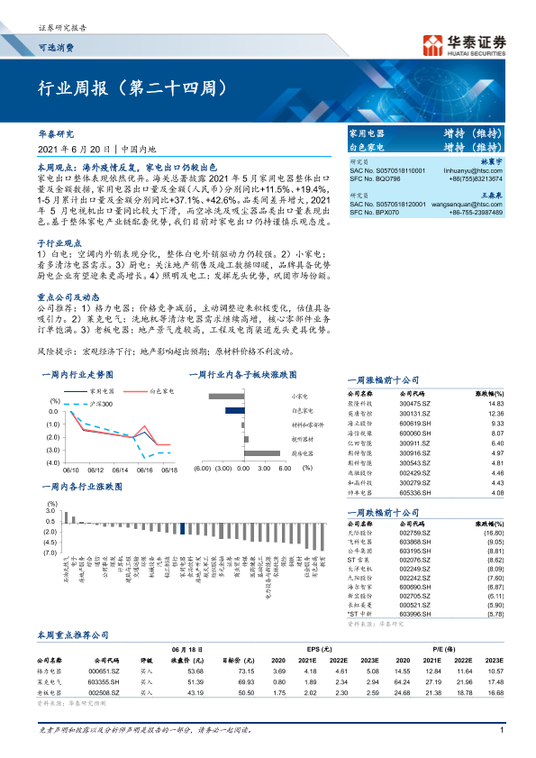 【华泰证券】【20210620】家用电器行业周报(第二十四周)-13页