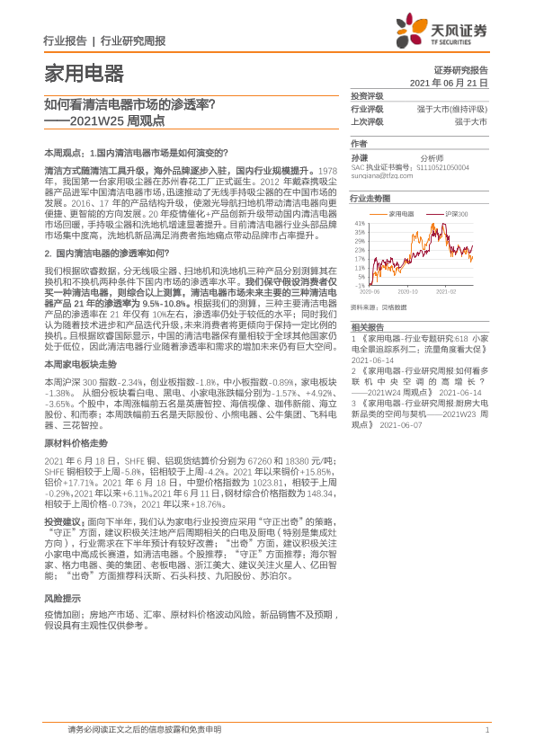 【天风证券】【20210621】家用电器2021W25周观点:如何看清洁电器市场的渗透率?-15页
