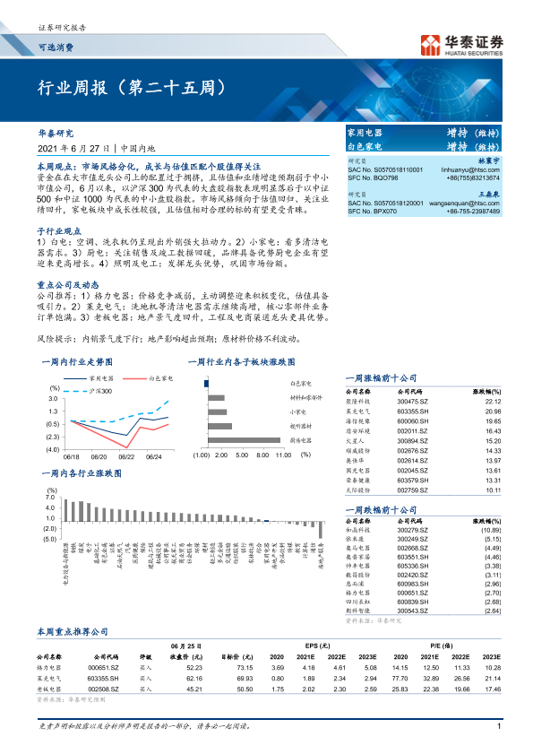 【华泰证券】【20210627】家用电器行业周报(第二十五周)-13页