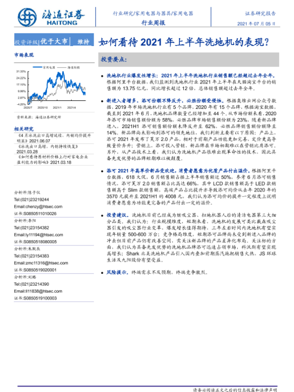 【海通证券】【20210705】20210705-海通证券-家用电器行业周报:如何看待2021年上半年洗地机的表现?-2页