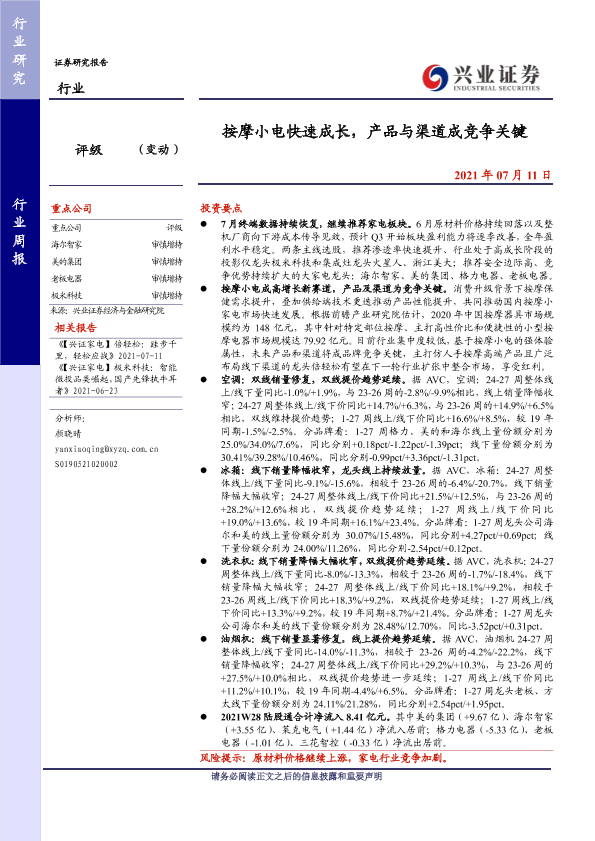 【兴业证券】【20210711】家电行业周报:按摩小电快速成长,产品与渠道成竞争关键-13页