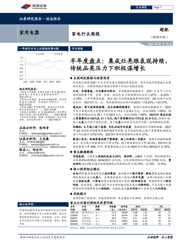 【国信证券】【20210719】20210719-国信证券-家电行业周报:半年度盘点:集成灶亮眼表现持续,传统品类压力下积极谋增长-12页