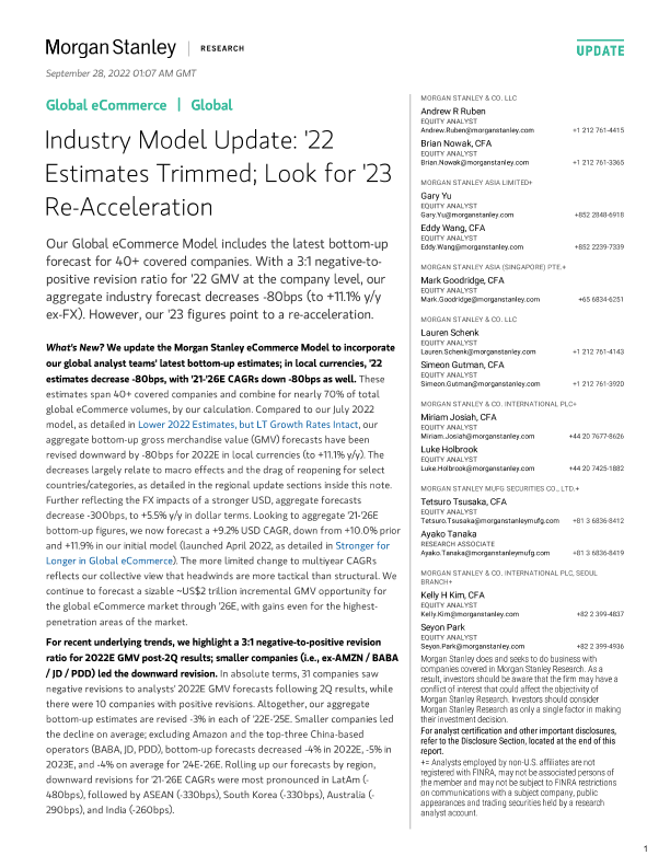 【Morgan Stanley】【20220928】Global eCommerce Industry Model Update '22 Estimates Trimmed; Look for '23 Re-Acceleration-25页