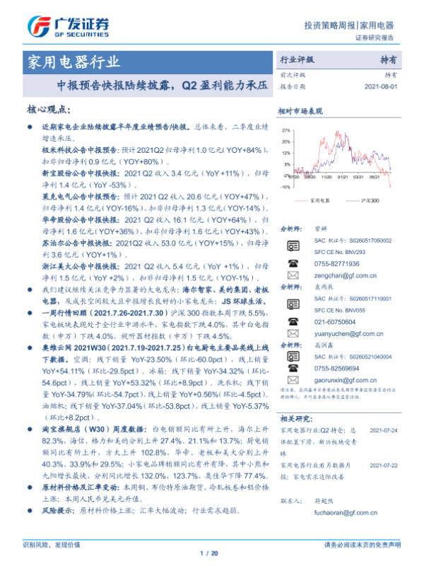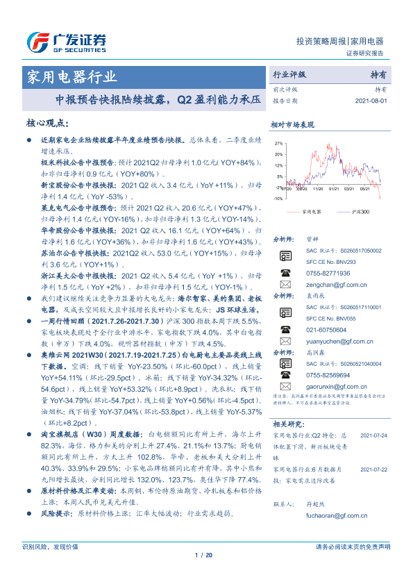 【广发证券】【20210801】家用电器行业:中报预告快报陆续披露,Q2盈利能力承压-20页