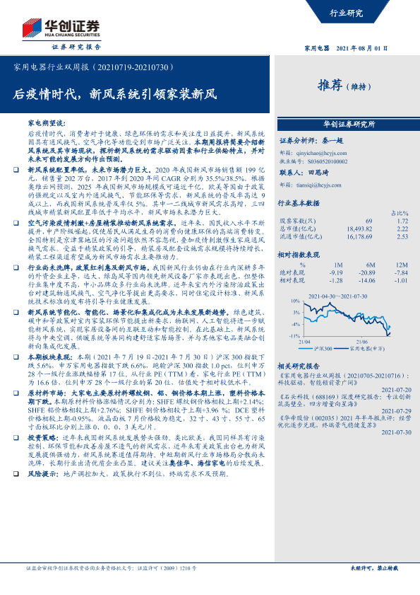 【华创证券】【20210801】家用电器行业双周报:后疫情时代,新风系统引领家装新风-30页