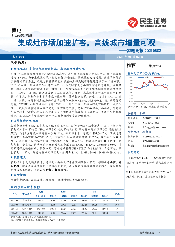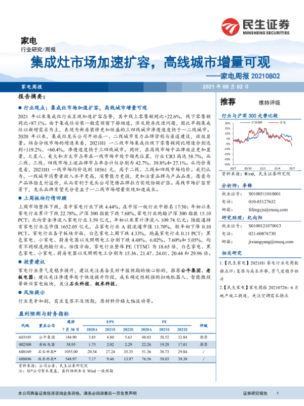 【民生证券】【20210802】家电周报:集成灶市场加速扩容,高线城市增量可观-14页