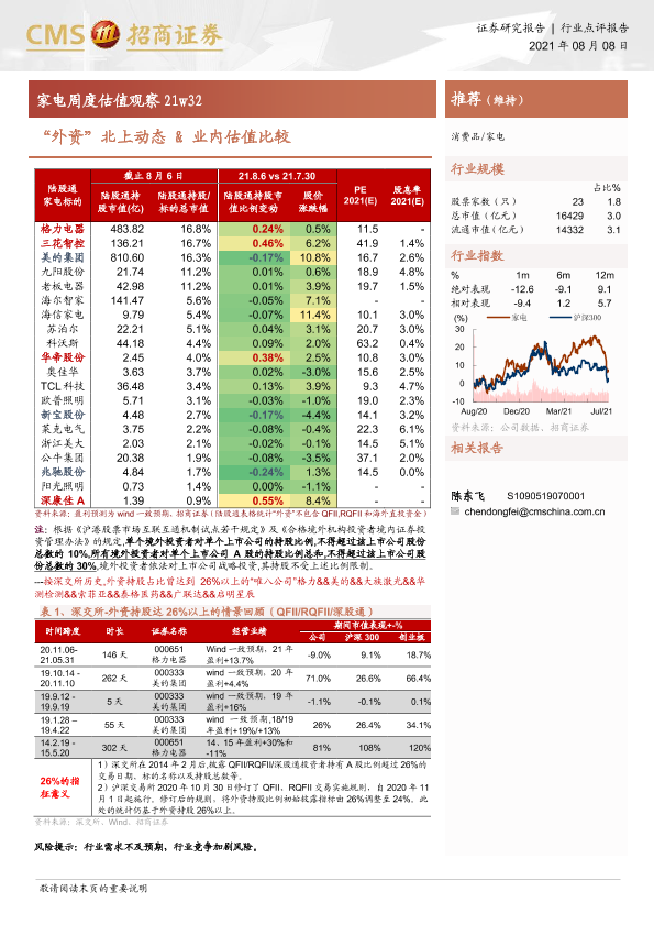 【海通证券】【20210808】家电周度估值观察21w32:“外资”北上动态&业内估值比较-3页