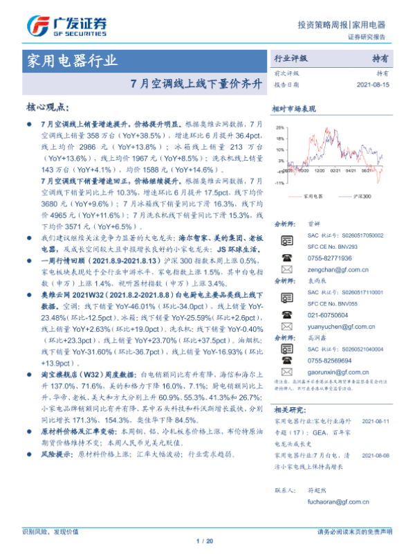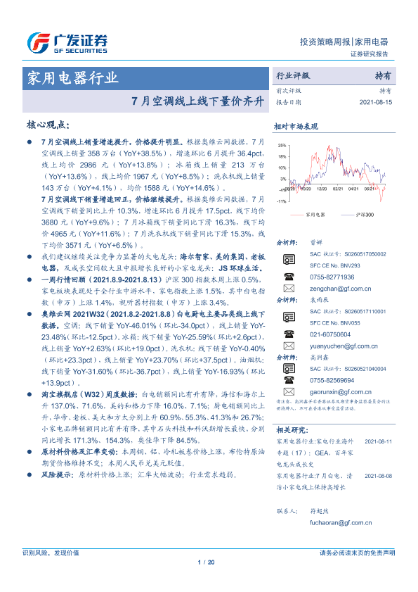 【广发证券】【20210815】20210815-广发证券-家用电器行业投资策略周报:7月空调线上线下量价齐升-20页
