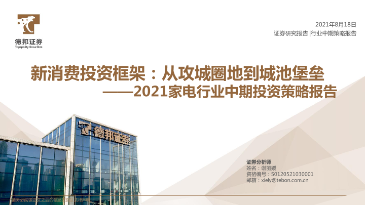 【德邦证券】【20210818】2021家电行业中期投资策略报告:新消费投资框架:从攻城圈地到城池堡垒-55页