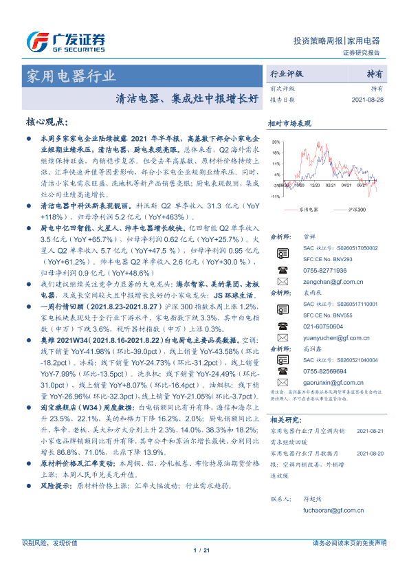 【广发证券】【20210828】家用电器行业:清洁电器、集成灶中报增长好-21页