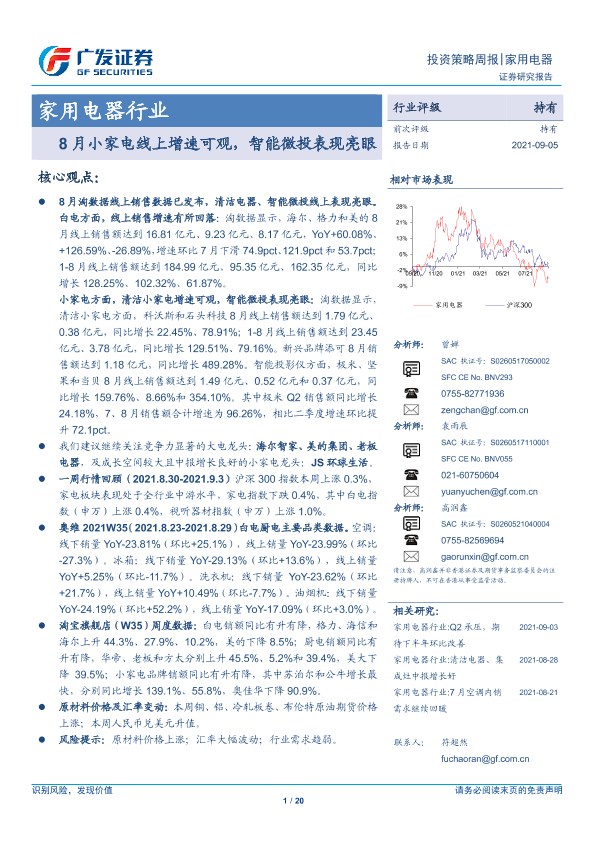 【广发证券】【20210905】家用电器行业:8月小家电线上增速可观,智能微投表现亮眼-20页
