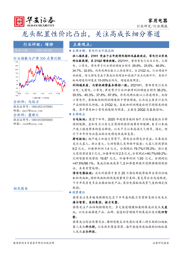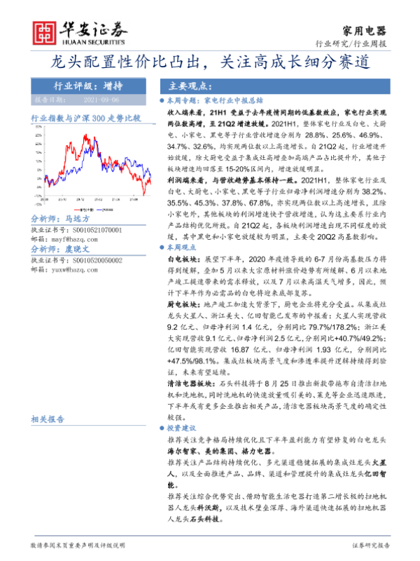 【华安证券】【20210906】家用电器行业周报:龙头配置性价比凸出,关注高成长细分赛道-18页