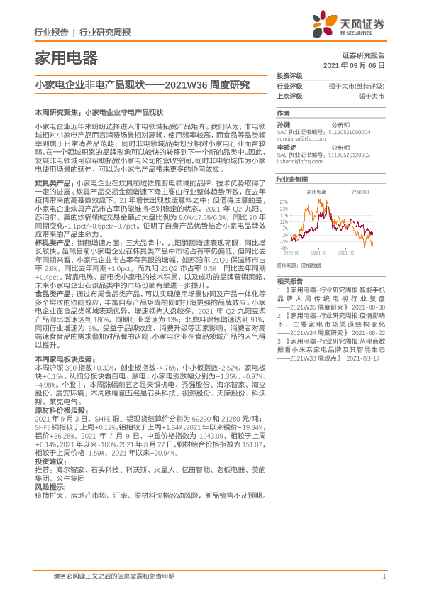 【天风证券】【20210906】家用电器2021W36周度研究:小家电企业非电产品现状-17页
