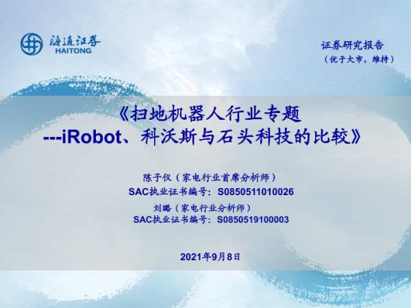 【海通证券】【20210908】扫地机器人行业专题 ---iRobot、科沃斯与石头科技的比较-29页