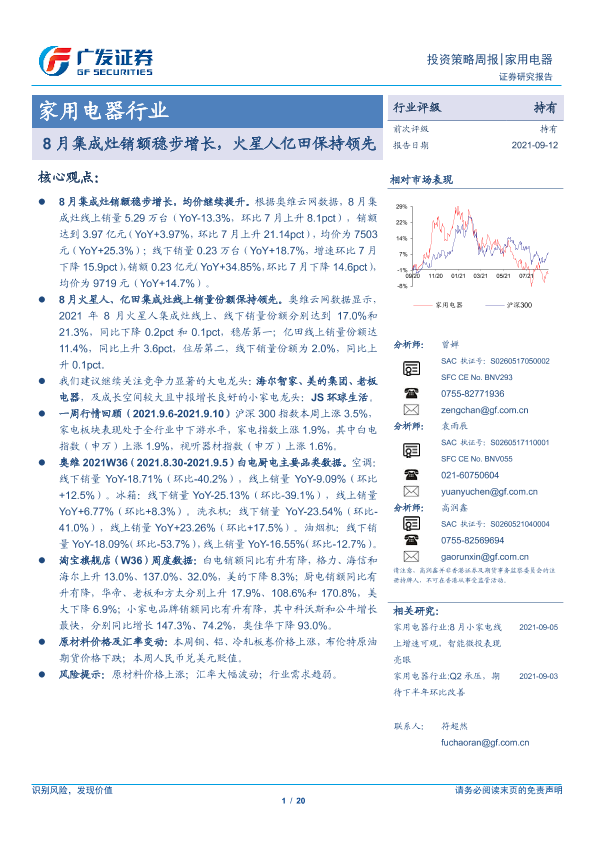 【广发证券】【20210912】8月集成灶销额稳步增长,火星人亿田保持领先-20页