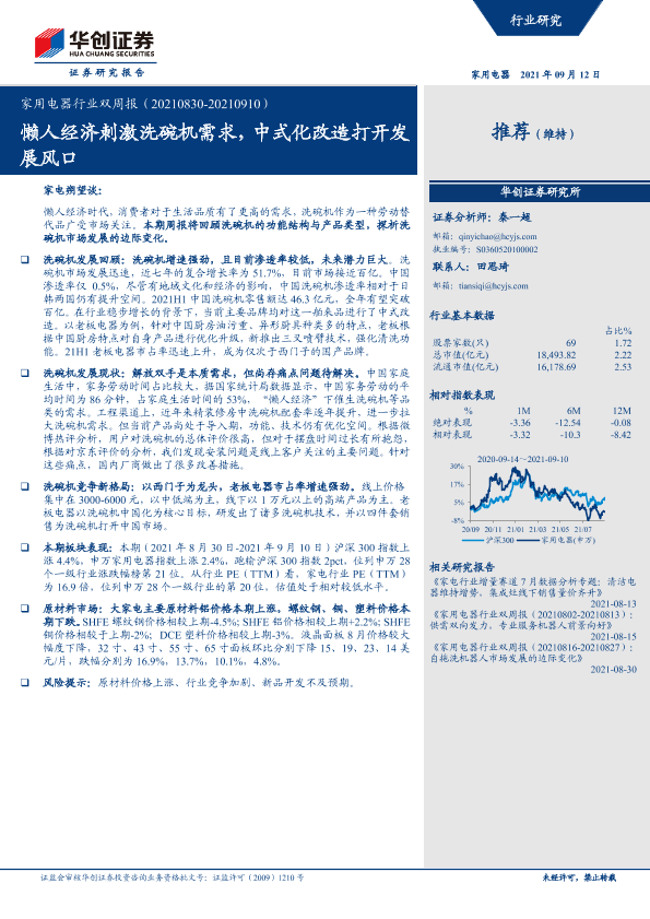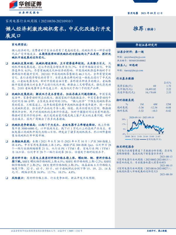 【华创证券】【20210912】家用电器行业双周报:懒人经济刺激洗碗机需求,中式化改造打开发展风口-26页