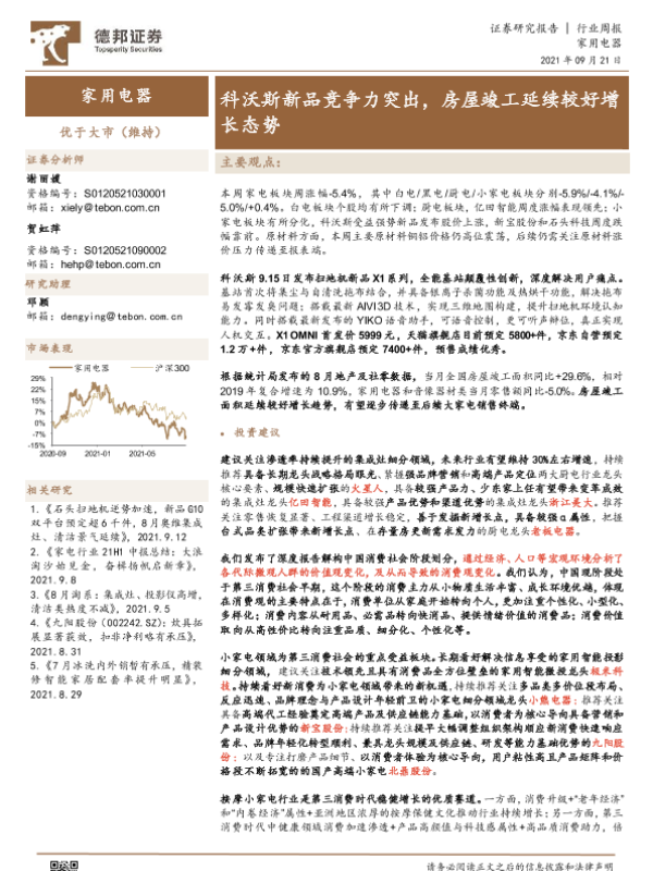 【德邦证券】【20210921】20210921-德邦证券-家用电器行业周报:科沃斯新品竞争力突出,房屋竣工延续较好增长态势-18页