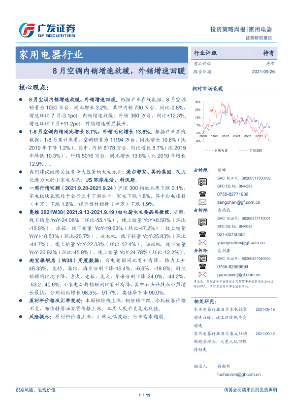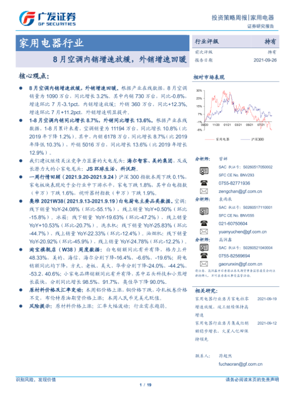 【广发证券】【20210926】家用电器行业投资策略周报:8月空调内销增速放缓,外销增速回暖-19页