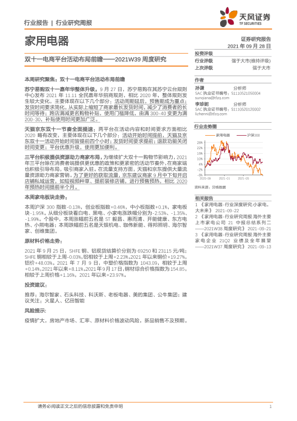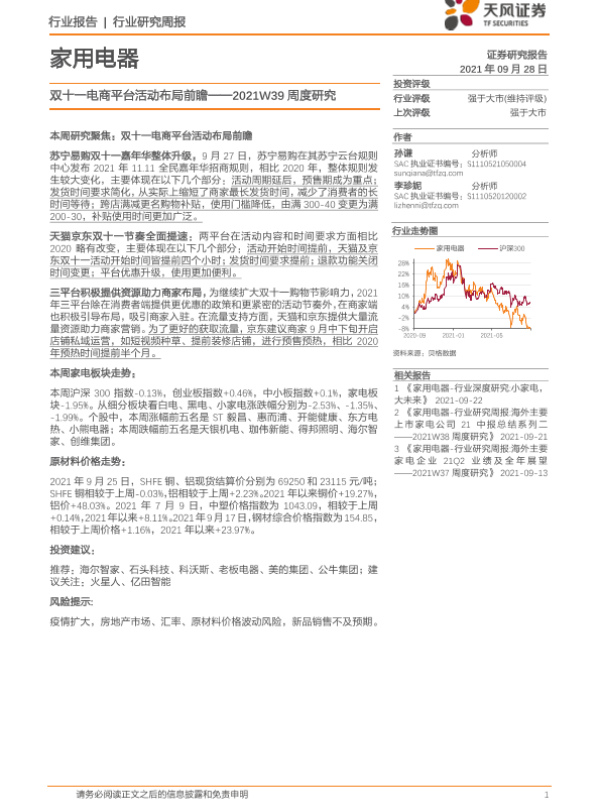 【天风证券】【20210928】家用电器2021W39周度研究:双十一电商平台活动布局前瞻-14页