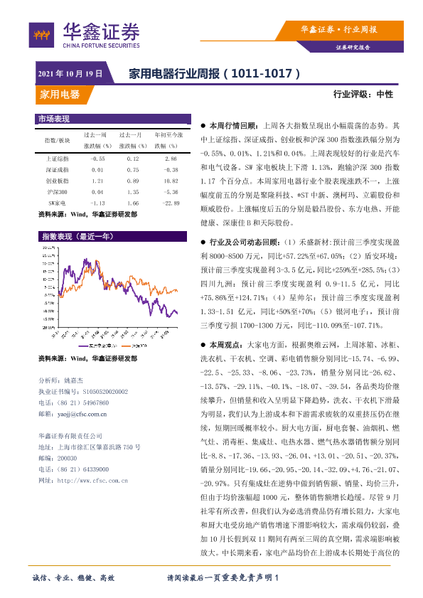 【华鑫证券】【20211019】家用电器行业周报-11页