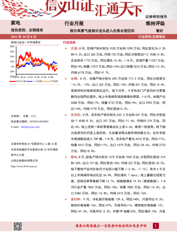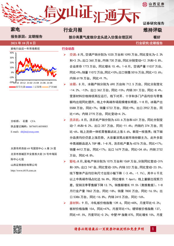 【山西证券】【20211008】20211008-山西证券-家电行业月报:部分高景气度细分龙头进入估值合理区间-14页