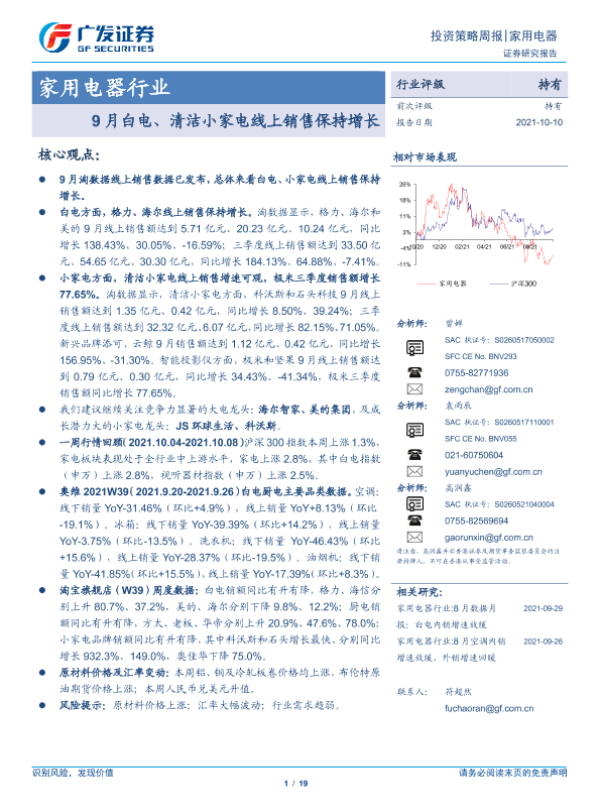 【广发证券】【20211010】20211010-广发证券-家用电器行业投资策略周报:9月白电、清洁小家电线上销售保持增长-19页