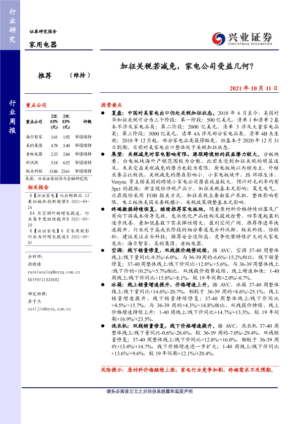 【兴业证券】【20211011】家用电器:加征关税若减免,家电公司受益几何?-12页
