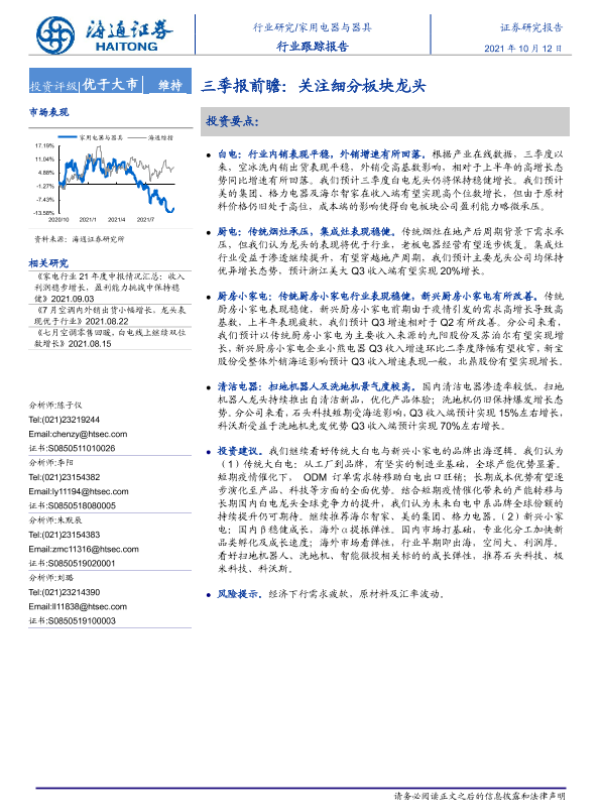 【海通证券】【20211012】家用电器与器具三季报前瞻:关注细分板块龙头-3页